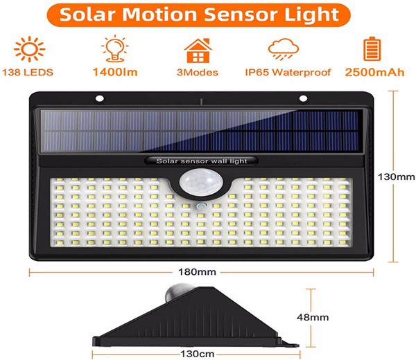 【High Capacity 2500 mAh Super Bright 138 LED】Compared with most similar solar lights on the market, our solar security lights with 138 LED super bright lights which is much brighter and powerful, and the design of 180°