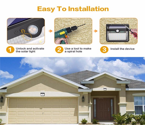 ☀【Install of Solar Security Light】 No necessary wiring, hang or use screw to mount it in any ideal place with sunlight. The ideal installation height is around 1.7 to 2 meters.