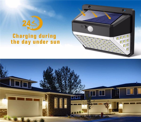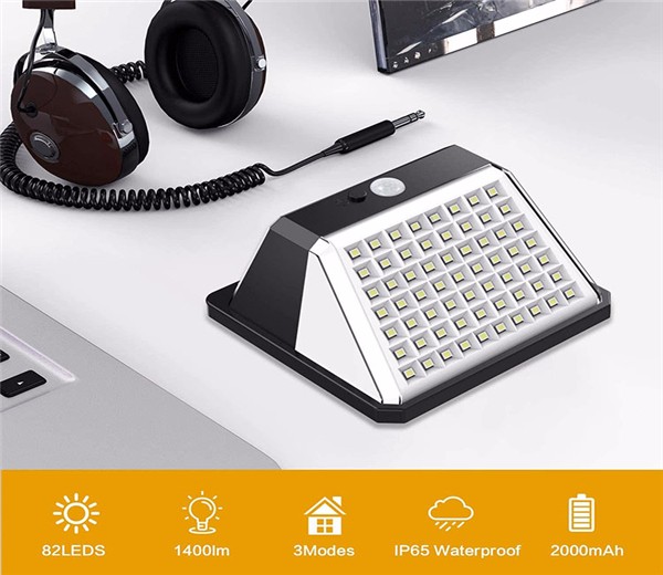 【WIDER ILLUMINATION ANGLE SOLAR LIGHTS OUTDOOR 】The upgraded 82 LED solar lights come with 3 intelligent modes: ① Strong light sensor mode. ② Dim light sensor mode. ③ Continuous strong light modes. With accurate 180° sensing angle PIR sensor, the solar lights can detect people as far away as 10-26ft. Besides, the solar motion sensor lights provide extra brightness and more visible area in a 270° super wide lighting angle