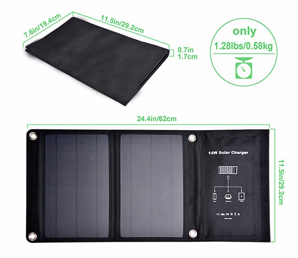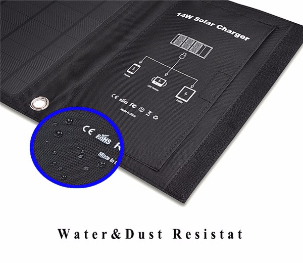 Name: 14W Portable Solar Panel Charger, Waterproof Camping Gear Solar Powered Charger