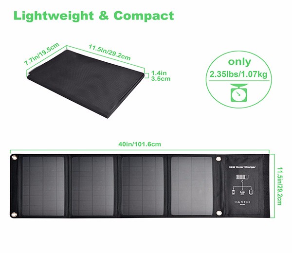 Name: 28W Portable Solar Panel Charger, Waterproof Camping Gear Solar Powered Charger