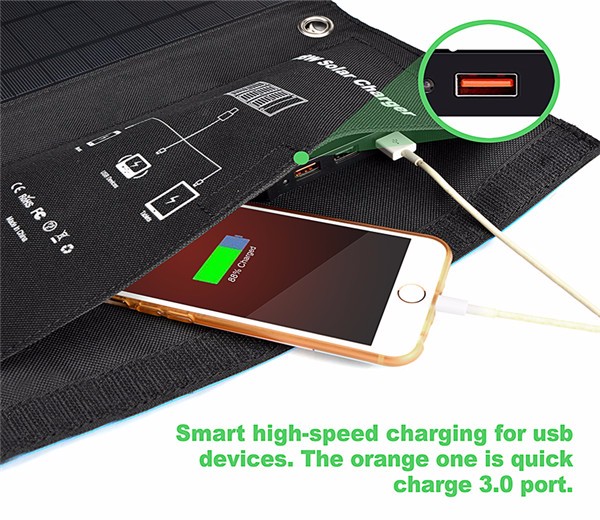 Material: PET monocrystalline solar panel/polyester waterproof fabric/intelligent charging chip.