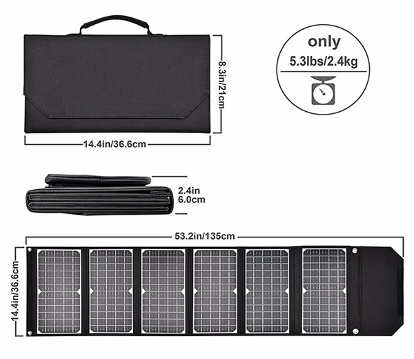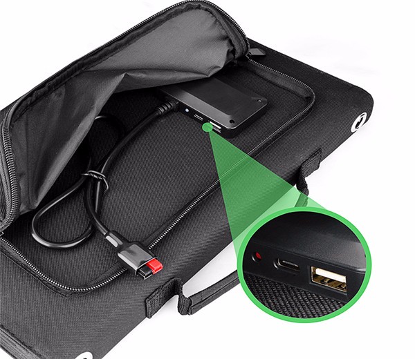 Material: PET monocrystalline solar panel/polyester waterproof fabric/intelligent charging chip.
