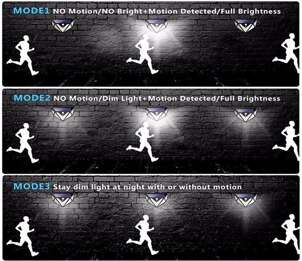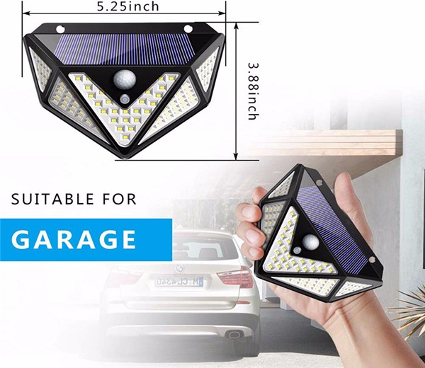 【Solar Security Lights with 3 intelligent modes】 size: 5.25*3.88 inch, the motion sensor of the solar lights has a very good detection, at night they react quickly to any movement that is within 3 to 5 meters away. It can also recognize animals, The 109 LED solar lights has 3 modes for your choice: strong long light mode, dim light sensor mode, strong light sensor mode.