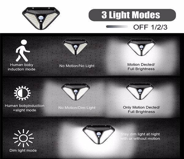 【Outdoor Solar Lights with Motion Sensor】 The solar lights have 3 smart modes for your choice: strong long light mode, dim light sensor mode, strong light sensor mode. The updated PIR motion sensor detects people at a distance of 10-16 feet. Meet your different requirements.